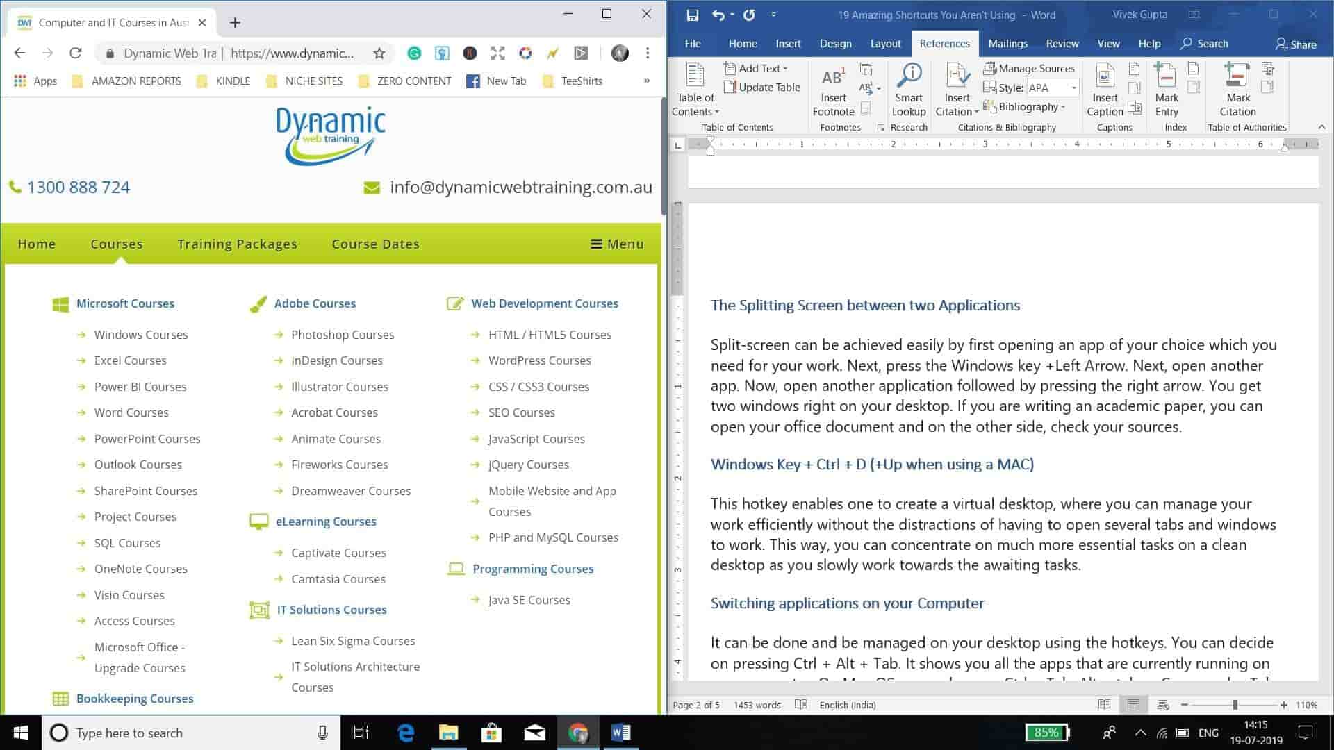 This hotkey enables one to create a virtual desktop, where you can manage your work efficiently without the distractions of having to open several tabs and windows to work. This way, you can concentrate on much more essential tasks on a clean desktop as you slowly work towards the awaiting tasks.