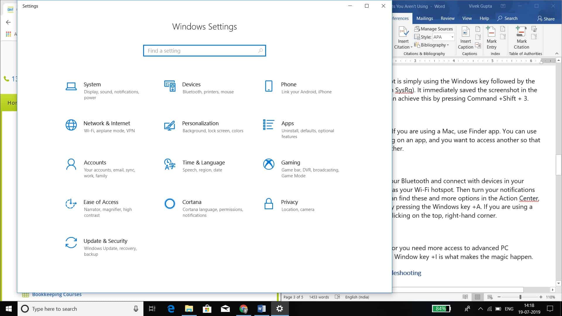 When you need more tweaking, or you need more access to advanced PC parameters, this comes in handy. Window key +I is what makes the magic happen.